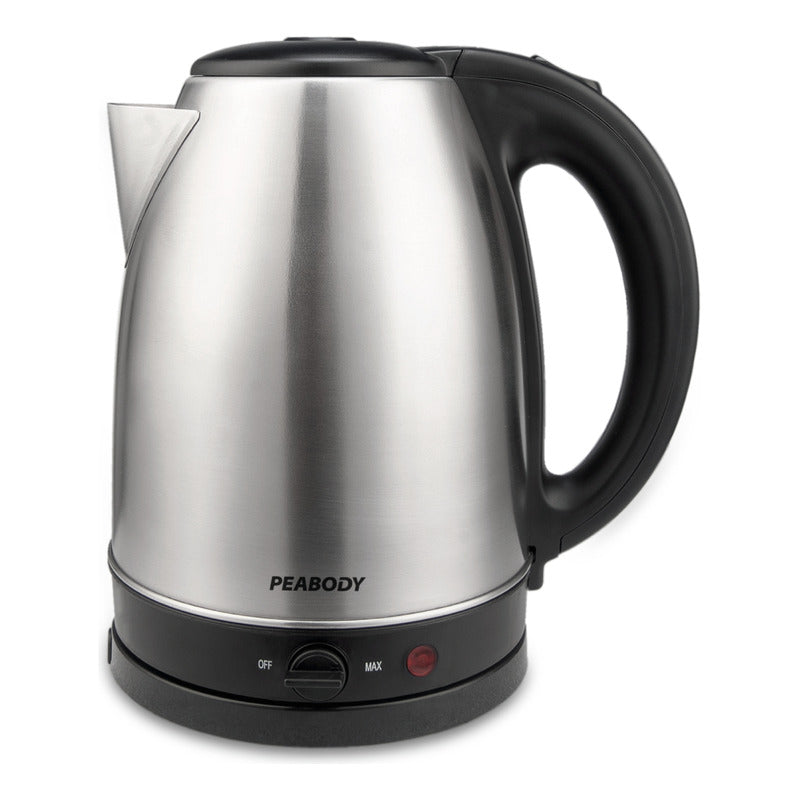 Con la pava eléctrica Peabody PE-K1708, disfruta de una bebida caliente en minutos. Bebidas calientes a tu gusto Este modelo incorpora un control que permite preparar cada mate, té o café a la temperatura ideal. Eficiencia energética Cuenta con apagado automático cuando el agua alcanza su punto de ebullición, contribuyendo al ahorro de energía. • Capacidad de 1,7 litros. • Cuerpo de acero inoxidable. • Control regulable de temperatura. • Regulación de temperatura óptima para mate (80°C). • Apagado automático al hervir (100°C). • Protección contra el calentamiento sin agua. • Compartimento para almacenar el cable. • Indicador luminoso de funcionamiento. • Origen Argentina.