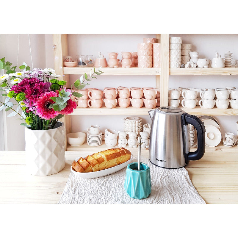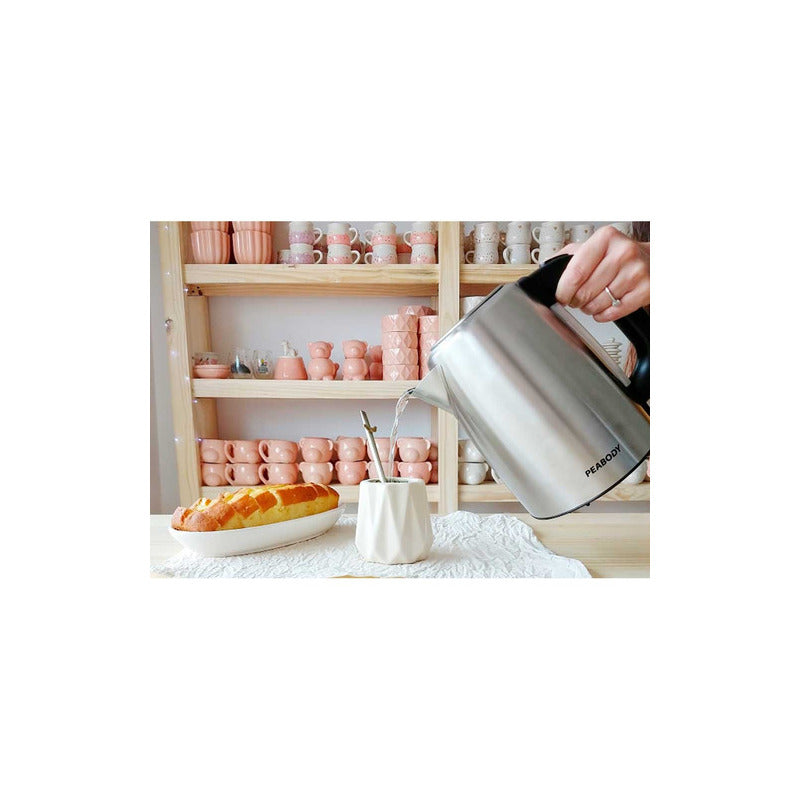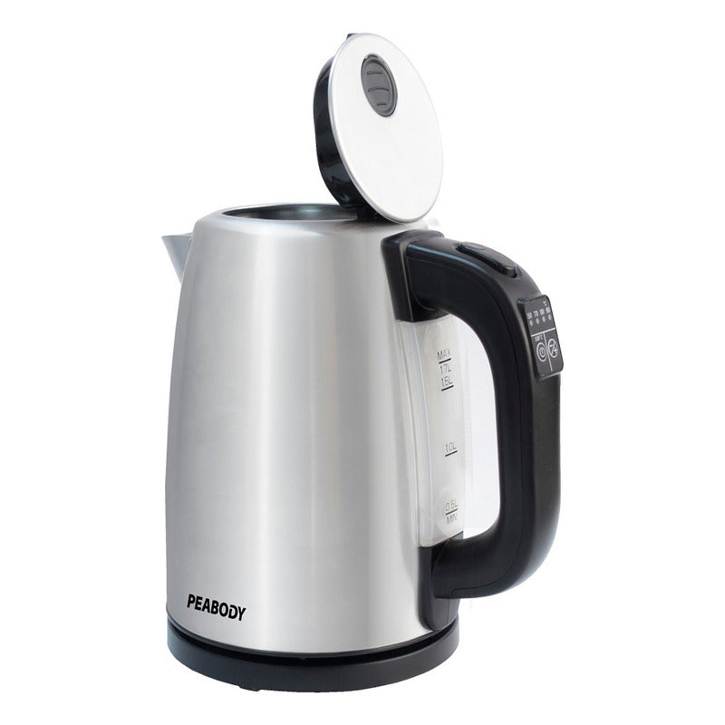 Pava Eléctrica Digital Peabody De 1,7 Litros PE-DKA1850 Características: - 2200W de potencia. - 1,7L de capacidad. - Cuerpo de acero inoxidable. - 4 temperaturas preseteadas. - Indicador luminoso de encendido. - Corte automático al momento de ebullición. - Botón de apertura de tapa. - Medidor de agua transparente. - Base con espacio guarda cable y giro 360°. - Control digital de temperatura. - Origen Argentina. - Garantía de 12 Meses.