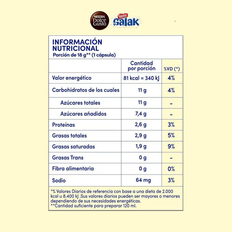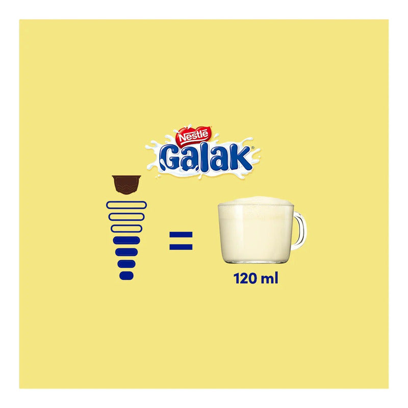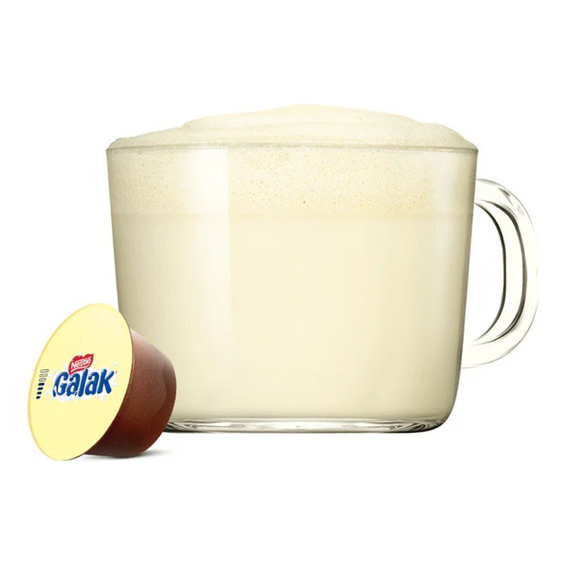 Cápsulas Café Galak NESCAFÉ® Dolce Gusto® x10 Inspirado en el clásico chocolate blanco Galak de Nestlé®, este café con leche ofrece un sabor dulce, cremoso y reconfortante. Perfil suave y lácteo, con el inconfundible sabor del chocolate blanco. Ideal para los que buscan una opción más dulce y diferente. Perfecto para una pausa indulgente en cualquier momento del día. Compatible con Dolce Gusto®, listo en minutos.